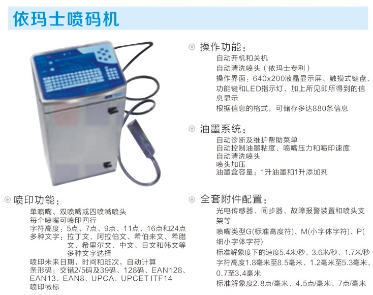Máy in phun EMAGS (依玛士喷码机) là sản phẩm nhập khẩu chất lượng cao của Công ty TNHH Công Nghệ In Phun Nhận Dạng Yi Hui Việt Nam. Máy in phun EMAGS (依玛士喷码机) của công ty Công Nghệ In Phun Nhận Dạng Yi Hui Việt Nam là dòng sản phẩm tốt nhất trên thị trường, hoạt động bền bỉ, tiết kiệm và tin cậy đáp ứng được mọi nhu cầu của khách hàng.